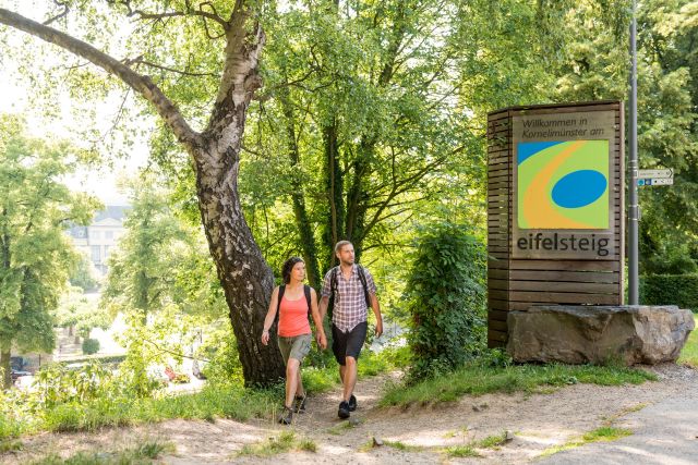 Uw Eifelsteig-wandeling begint in Gemünd, waar de Olef in de Urft uitmondt. U volgt kronkelende paden door het bos en klimt gestaag omhoog tot het uitkijkpunt Kuckucksley met weids uitzicht over het Oleftal. Daarna voert de route langs Golbach, beekjes en glooiende weiden naar de eindbestemming: Klooster Steinfeld waar u overnacht.