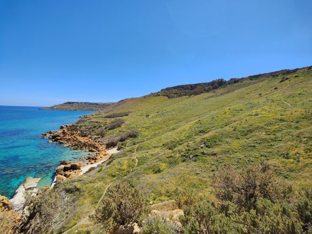 Vanuit Vittoria reist u met de lijnbus naar Marsalforn. Wandel langs de kust naar het rode zandstrand Ramla Beach, met onderweg mooie zwemplekjes. Het wandelpad is soms steil en los, dus wees voorzichtig.